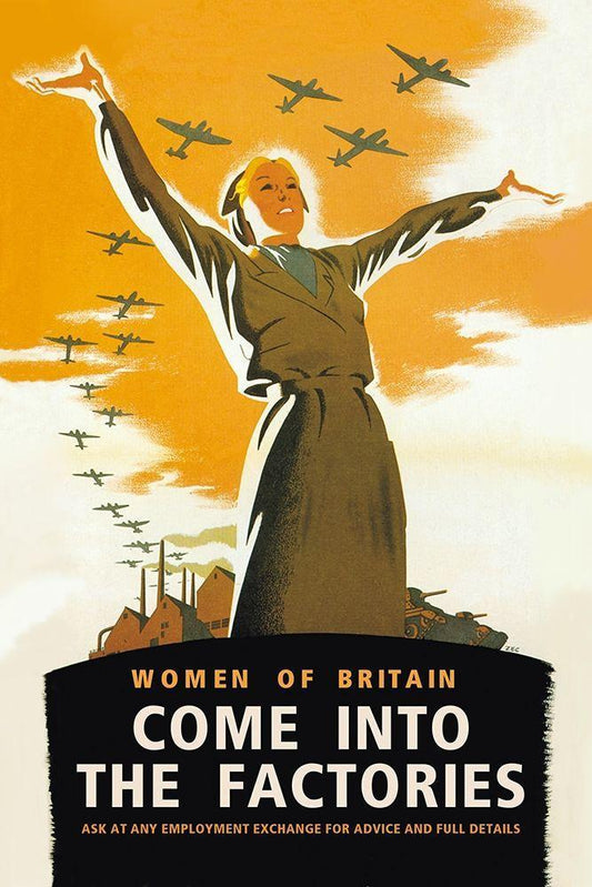 Women of Britain, Come into the Factories White Modern Wood Framed Art Print with Double Matting by Brydone