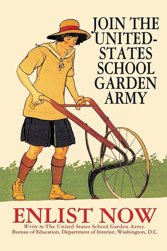 Join the United States School Garden Army White Modern Wood Framed Art Print with Double Matting by Penfield, Edward