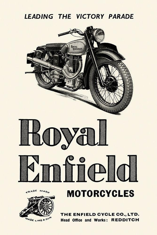 Royal Enfield Motorcycles: Leading the Victory Parade White Modern Wood Framed Art Print with Double Matting by Unknown