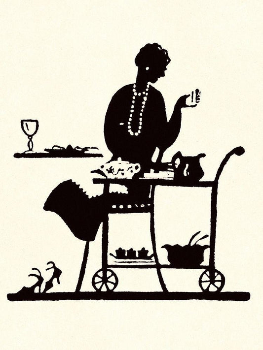 Homemaker Takes Items From a Serving Cart White Modern Wood Framed Art Print with Double Matting by Parrish, Maxfield