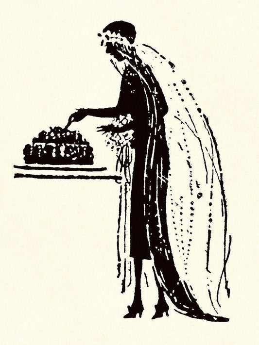 Bride Cuts Her Wedding Cake White Modern Wood Framed Art Print with Double Matting by Parrish, Maxfield