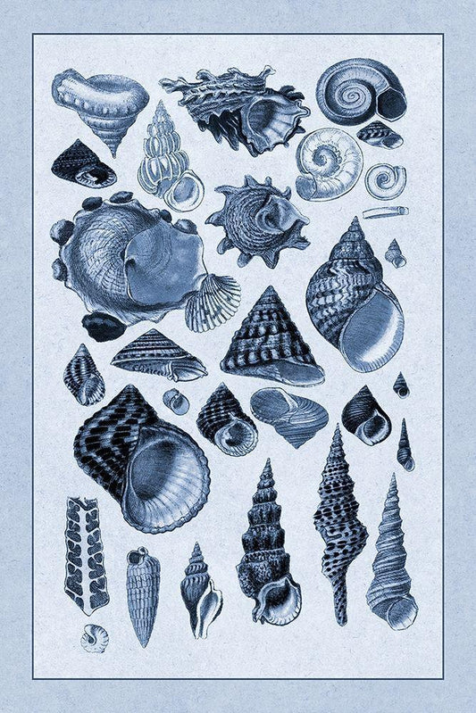 Shells: Trachelipoda #3 (Blue) White Modern Wood Framed Art Print with Double Matting by Sowerby, G.B.