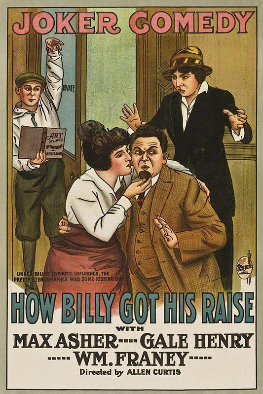 Movie Poster: How Billy Got His Raise White Modern Wood Framed Art Print with Double Matting by Unknown 20th Century American Illustrator