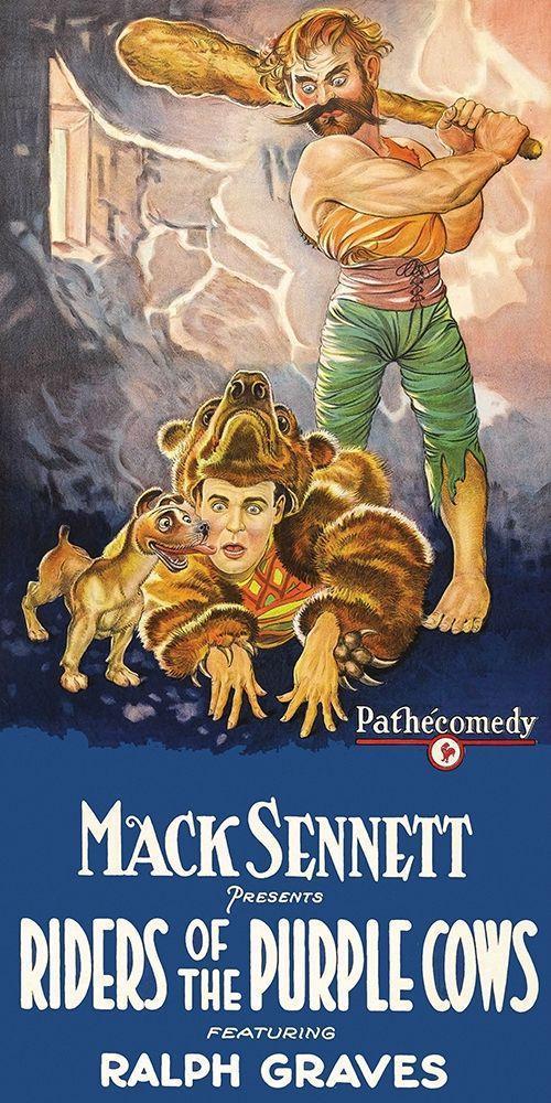 Movie Poster: Mack Sennett - Riders of the Purple Cows White Modern Wood Framed Art Print with Double Matting by Unknown 20th Century American Illustrator