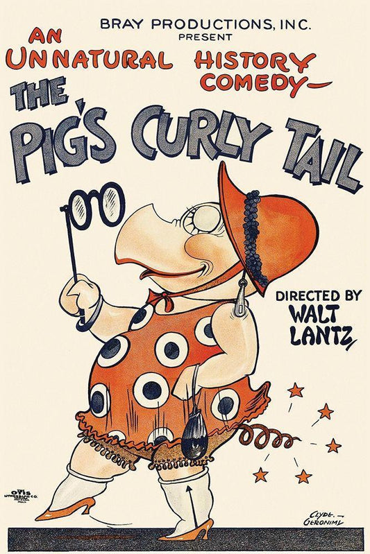 Movie Poster: The Pigs Curly Tail White Modern Wood Framed Art Print with Double Matting by Unknown 20th Century American Illustrator