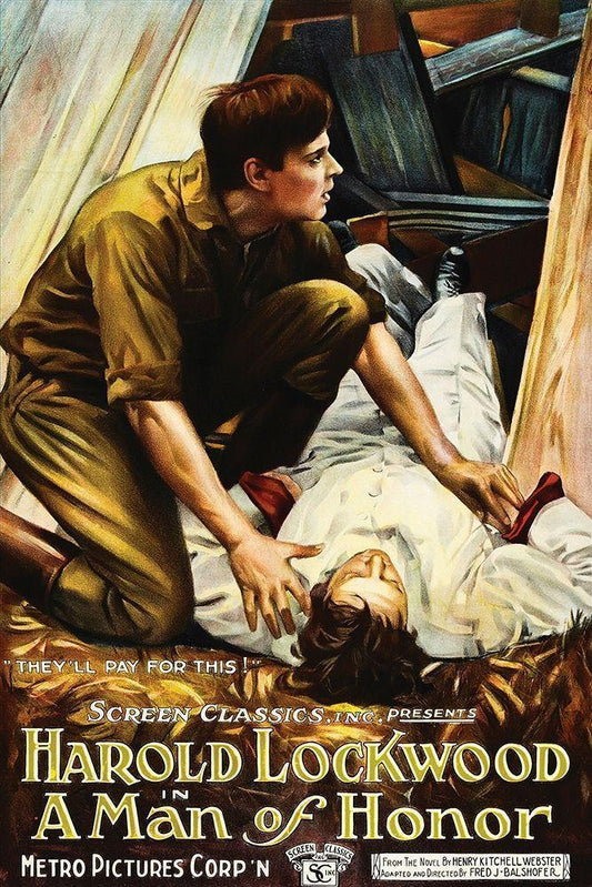 Movie Poster: Harold Lockwood - A Man of Honor White Modern Wood Framed Art Print with Double Matting by Unknown 20th Century American Illustrator
