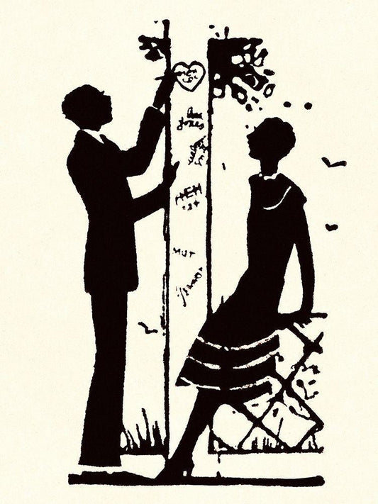 Suitor Pulls a Heart From a Trellis White Modern Wood Framed Art Print with Double Matting by Parrish, Maxfield