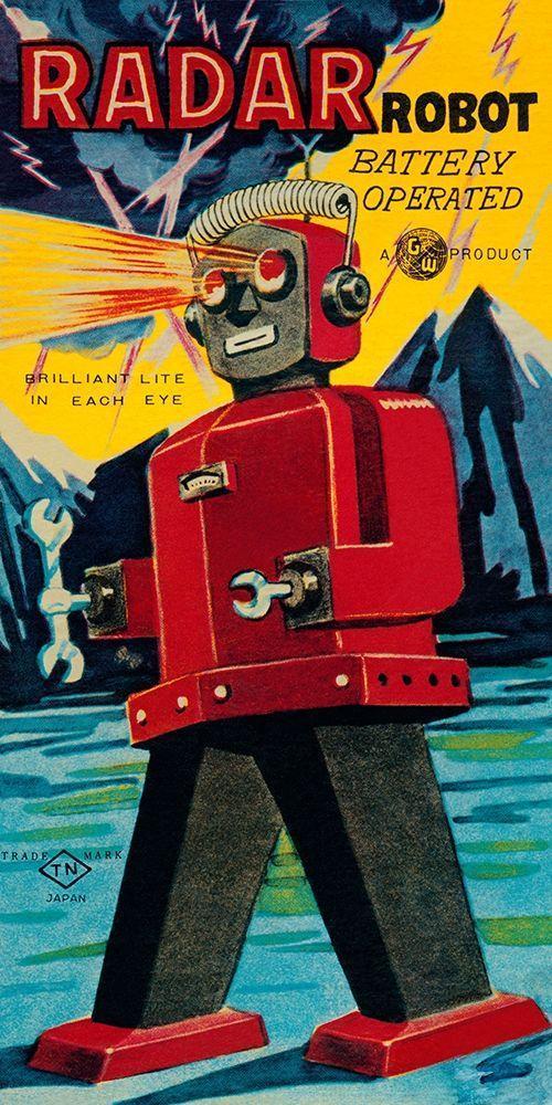Radar Robot White Modern Wood Framed Art Print with Double Matting by Retrobot
