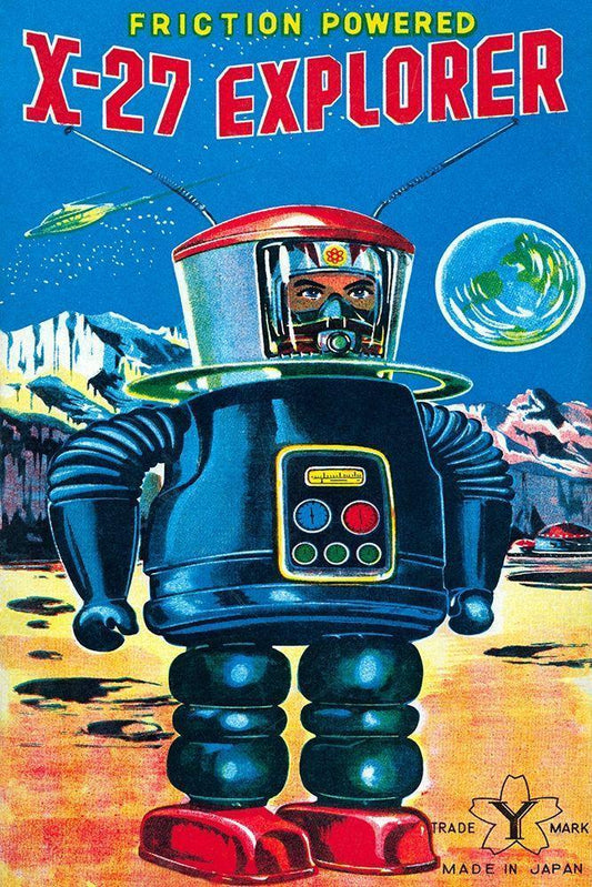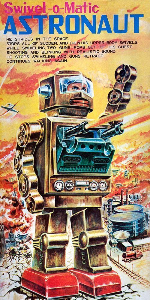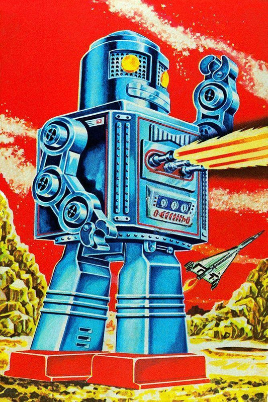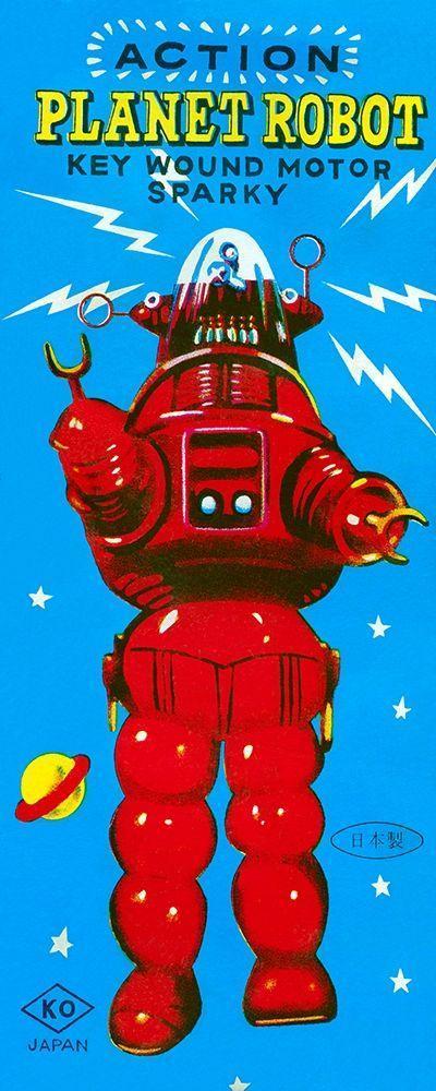 Action Planet Robot White Modern Wood Framed Art Print with Double Matting by Retrobot