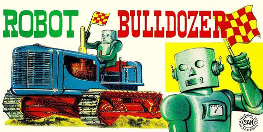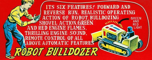 Robot Bulldozer - Six Features White Modern Wood Framed Art Print with Double Matting by Retrobot