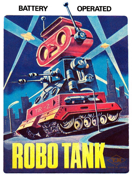 Robo Tank White Modern Wood Framed Art Print with Double Matting by Retrobot