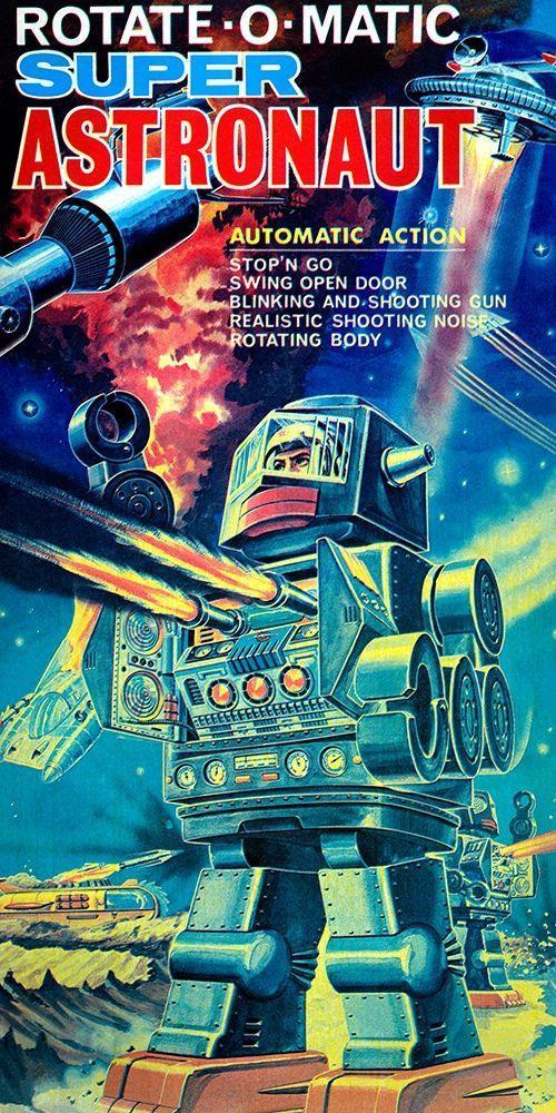Rotate-O-Matic Super Astronaut White Modern Wood Framed Art Print with Double Matting by Retrobot