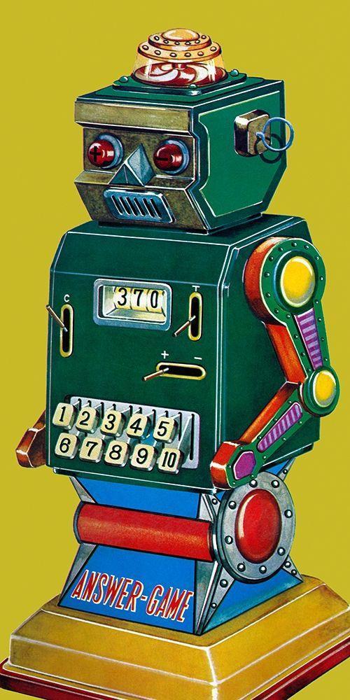 Answer Game Robot White Modern Wood Framed Art Print with Double Matting by Retrobot