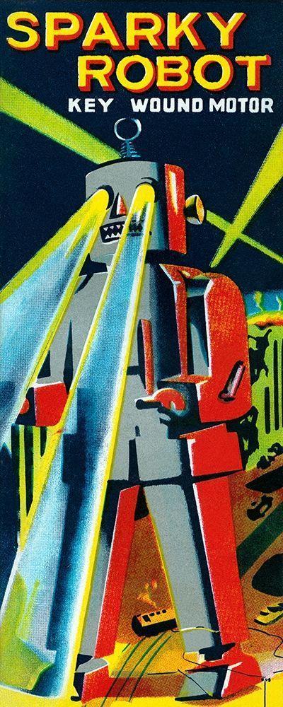 Sparky Robot White Modern Wood Framed Art Print with Double Matting by Retrobot