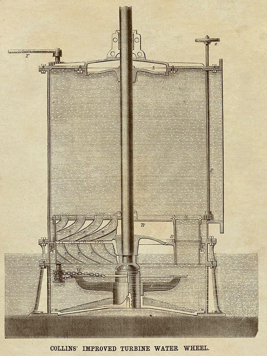Collins Improved Turbine Water Wheel White Modern Wood Framed Art Print with Double Matting by Inventions