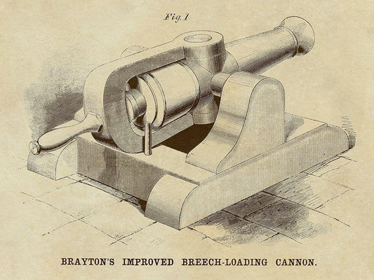 Braytons Improved Breech-loading Cannon White Modern Wood Framed Art Print with Double Matting by Inventions