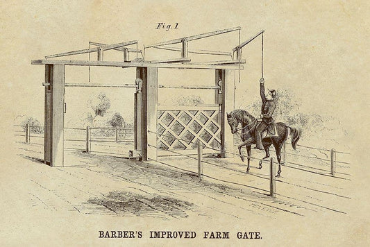 Barbers Improved Farm Gate White Modern Wood Framed Art Print with Double Matting by Inventions