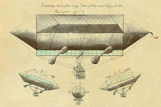 Cross the English Channel in a Balloon White Modern Wood Framed Art Print with Double Matting by Inventions