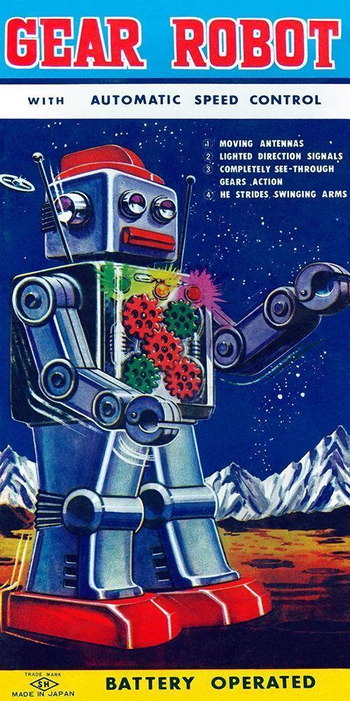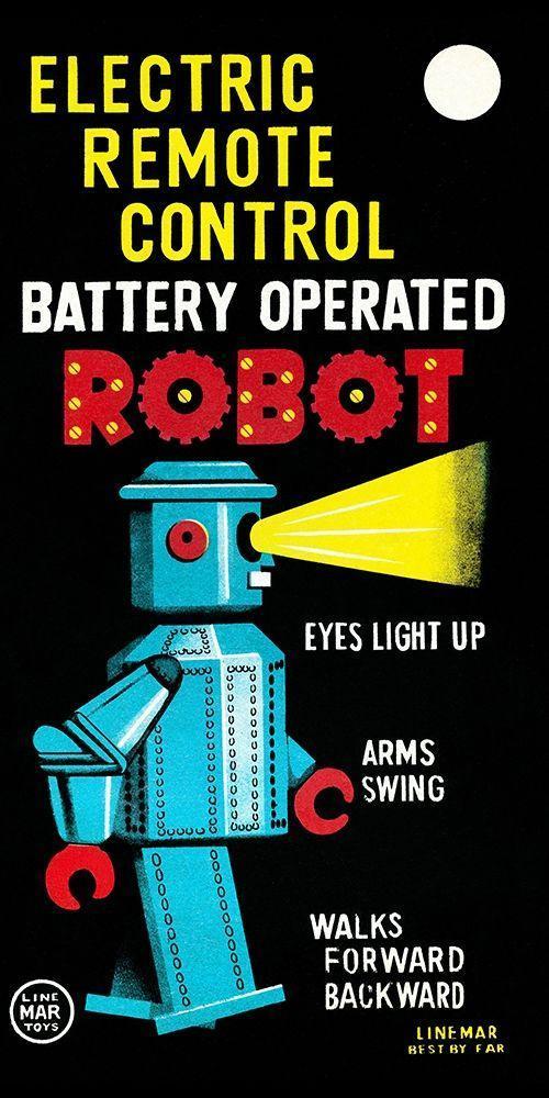Electric Remote Control Battery Operated Robot White Modern Wood Framed Art Print with Double Matting by Retrobot