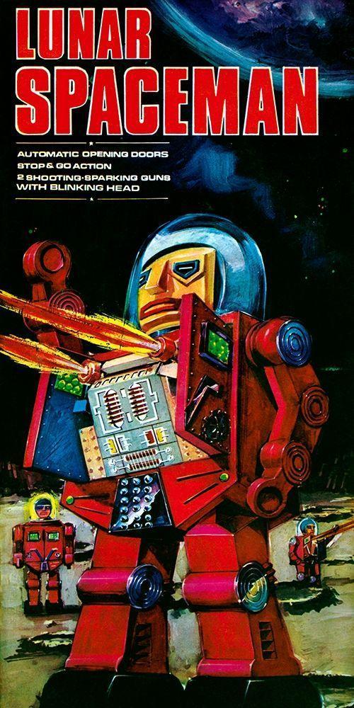 Lunar Spaceman White Modern Wood Framed Art Print with Double Matting by Retrobot