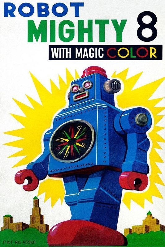 Robot Mighty 8 with Magic Color White Modern Wood Framed Art Print with Double Matting by Retrobot