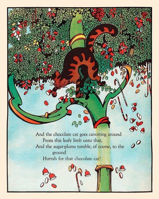 Gingerbread dog chases the Cat and Birds White Modern Wood Framed Art Print with Double Matting by Field, Eugene