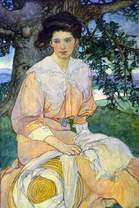 Boy Under an Apple Tree White Modern Wood Framed Art Print with Double Matting by Smith, Jesse Willcox