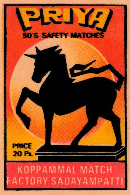 Priya 50s Safety Matches White Modern Wood Framed Art Print with Double Matting by Phillumenart