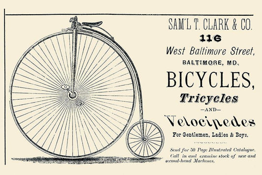 Bicycles, Tricycles, and Velocipedes White Modern Wood Framed Art Print with Double Matting by Unknown