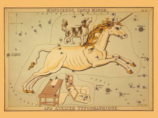 Monoceros, Canis Minor, and Atelier Typographique White Modern Wood Framed Art Print with Double Matting by Aspin, Jehoshaphat