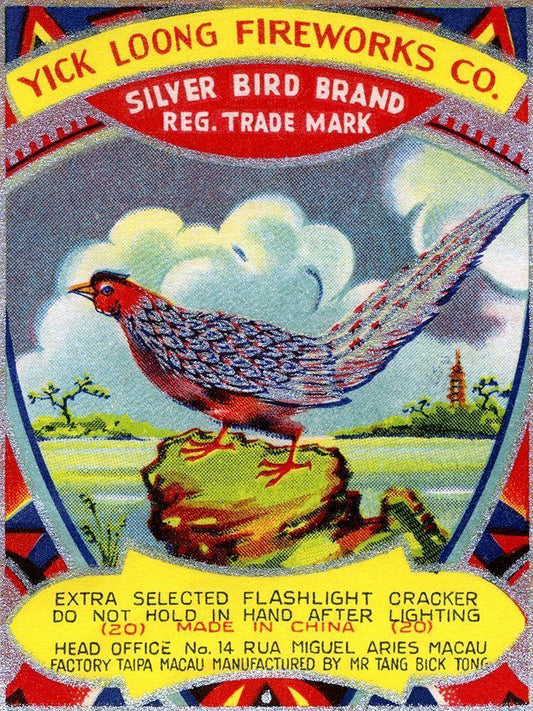 Yick Loong Silver Bird Brand Firecracker White Modern Wood Framed Art Print with Double Matting by Unknown