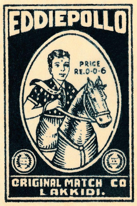 Golden Horse Avg. 50s Safety Matches White Modern Wood Framed Art Print with Double Matting by Phillumenart