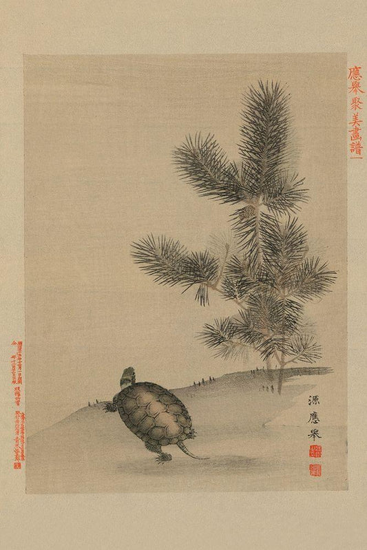 Turtle White Modern Wood Framed Art Print with Double Matting by Unknown