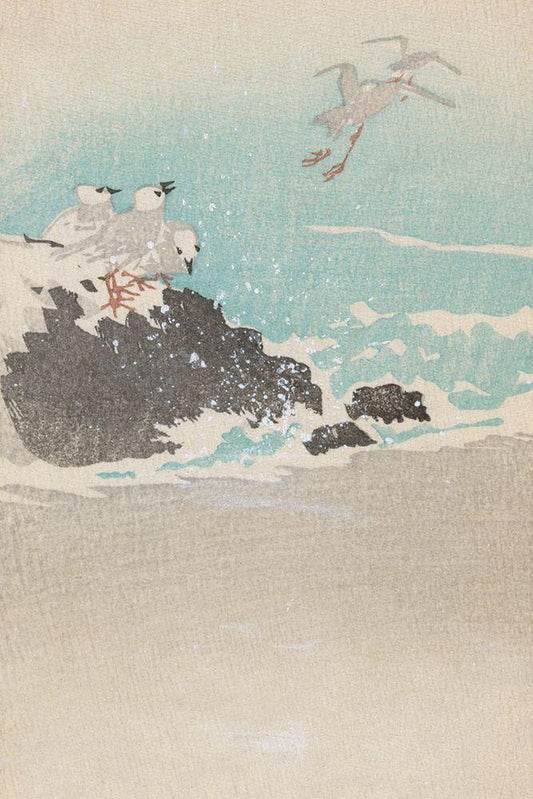 Plovers over waves White Modern Wood Framed Art Print with Double Matting by Unknown