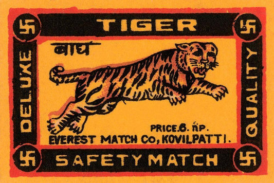 Tiger Safety Matches White Modern Wood Framed Art Print with Double Matting by Phillumenart