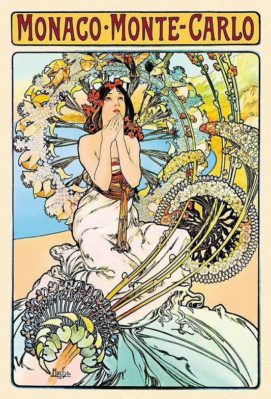 Monaco - Monte Carlo White Modern Wood Framed Art Print with Double Matting by Mucha, Alphonse