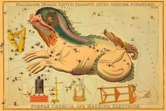Psalterium Georgii, Fluvius Eridanus, Cetus, Officina Sculptoris, Fornax Chemica, and Machina Electr White Modern Wood Framed Art Print with Double Matting by Aspin, Jehoshaphat