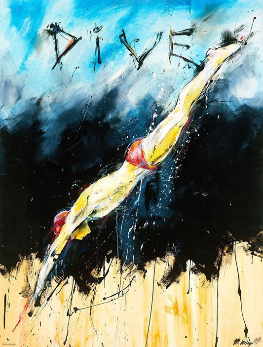DIVE Color White Modern Wood Framed Art Print with Double Matting by Wiley, Marta
