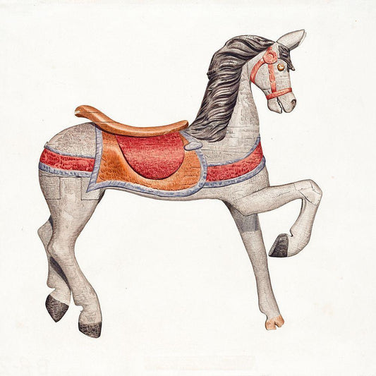Carousel Horse II 1938 White Modern Wood Framed Art Print with Double Matting by Ryder, Albert