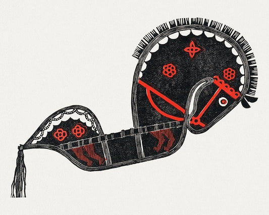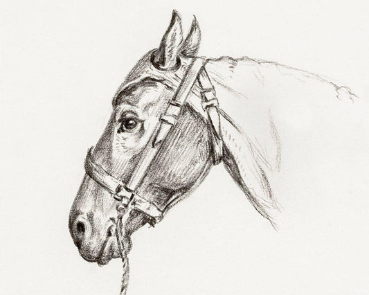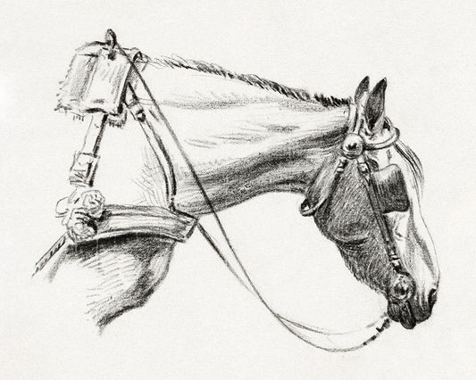 Horses with Antique Riding Equipment II White Modern Wood Framed Art Print with Double Matting by Vintage Drawings