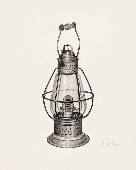 Coal Oil Lantern 1939 White Modern Wood Framed Art Print with Double Matting by Farrell, Alfred