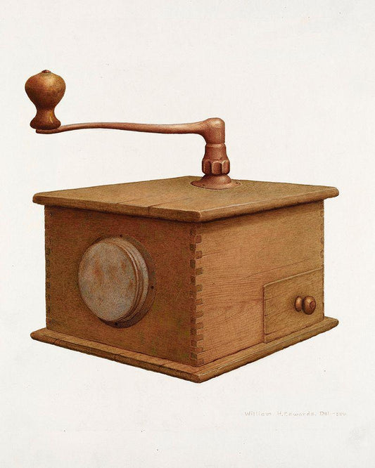 Coffee Grinder 1940 White Modern Wood Framed Art Print with Double Matting by Edwards, William H.