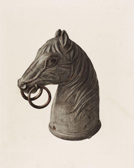 Hitching Post 1940 White Modern Wood Framed Art Print with Double Matting by Vintage Drawings