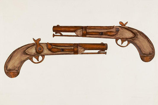 Cap and Ball Revolver 1937 White Modern Wood Framed Art Print with Double Matting by Robinson, LeRoy