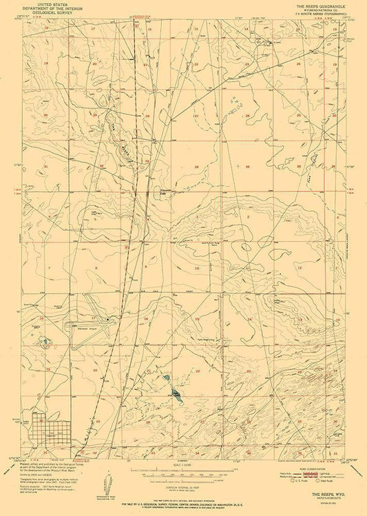 Reefs Wyoming Quad - USGS 1951 White Modern Wood Framed Art Print with Double Matting by USGS