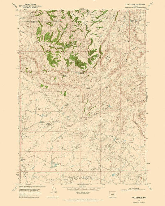 Salt Canyon Wyoming Quad - USGS 1968 White Modern Wood Framed Art Print with Double Matting by USGS