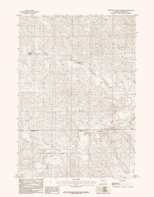Threemile Creek Reservoir Wyoming Quad - USGS 1984 White Modern Wood Framed Art Print with Double Matting by USGS