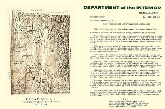 Yellowstone National Park Radar Mosaic - USGS 1968 White Modern Wood Framed Art Print with Double Matting by USGS