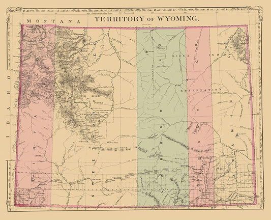 Wyoming - Rand McNally 1879 White Modern Wood Framed Art Print with Double Matting by Rand McNally