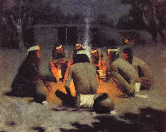 Apache Medicine Song White Modern Wood Framed Art Print with Double Matting by Remington, Frederic
